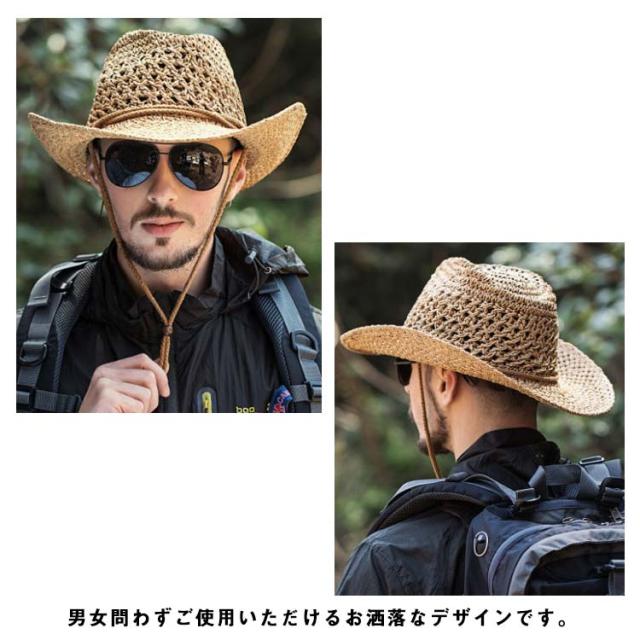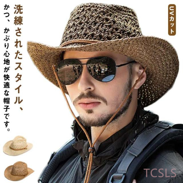 麦わら帽子 メンズ つば広 農作業 帽子 農作業帽子 ガーデニング 帽子 ウエスタンハット 春 夏 UV 日よけ おしゃれ UVカット 紫外線 あご紐 ナチュラル コーヒー キャメル ベージュ