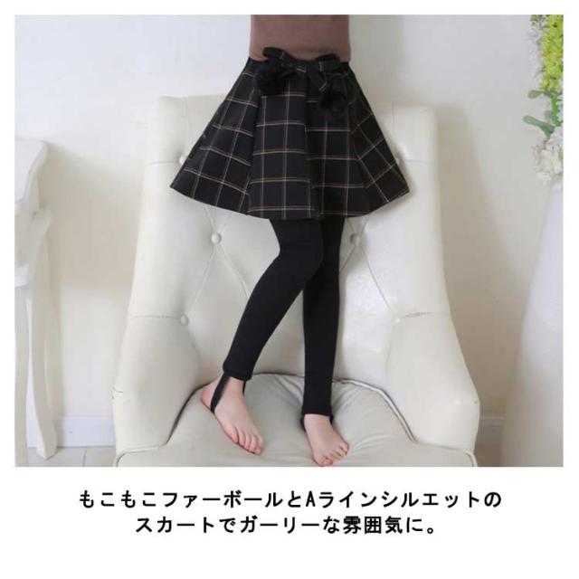| 可愛いファーボール付きのチェック柄スカート+レギンス一体型ボトムス。 もこもこファーボールとAラインシルエットのスカートでガーリーな雰囲気に。 合わせやすく、コーデに迷わないレギンス付きフレアスカート 伸縮性バツグンで穿き心地◎ あったか裏起毛で寒い季節も可愛くおしゃれに過ごせます♪ 通園や通学にはもちろん、お出かけ着としても使える万能アイテムです。 | |