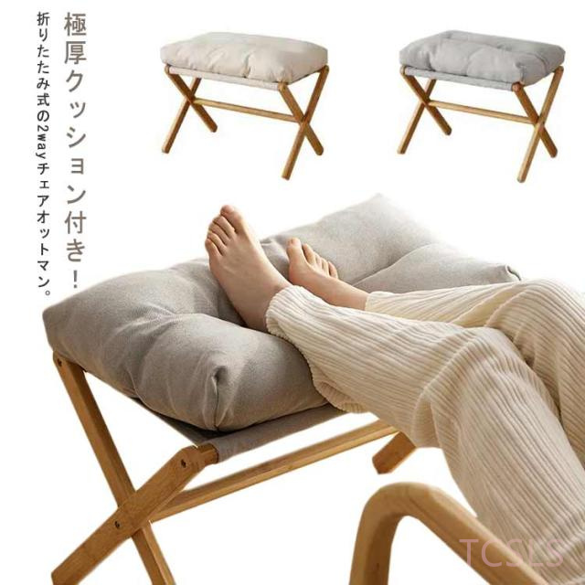 オットマン 折りたたみ 足置き 足台 足置き台 竹製 フットレスト 一人掛け 極厚 クッション付き 木製 スツール ソファ オットマン 脚置き 腰かけ 折り畳み式 収納 軽量 足のせ椅子 フットスツール 洗えるカバー 椅子 いす イス 北欧 おしゃれ シンプル リビング 玄関