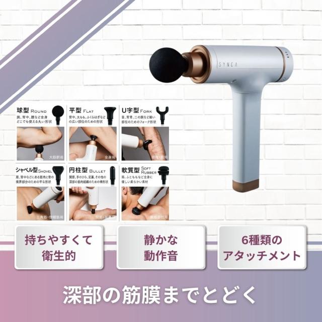 6種のアタッチメント×6段階振動調整で全身へアプローチ。1500〜3000回/分の振動調整が可能で、部位に合わせたケアができます。