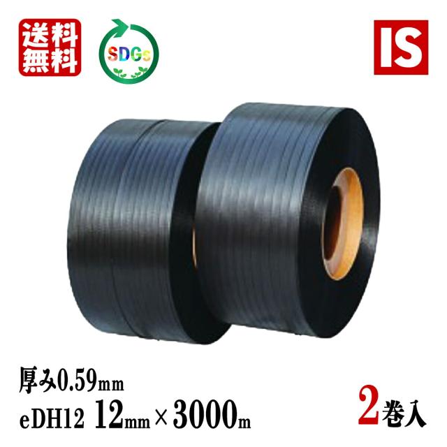 送料無料 5ケース 10巻 PPバンド 手芸 バッグ 3000 黒 eDH12 幅12mm X 3000 m リサイクル 厚み0.59mm 国産 結束ヒモ 梱包バンド 結束バンド 梱包機 結束機 グリーンプラ アイエスショップ