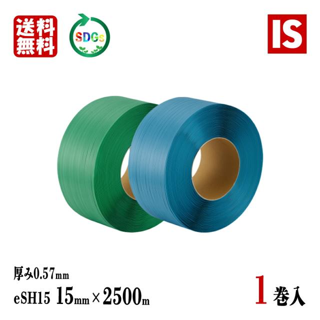 送料無料 1巻 PPバンド 手芸 バッグ 2500 緑 eSH15 幅15mm X 2500 m リサイクル 厚み0.57mm 国産 結束ヒモ 梱包バンド 結束バンド 梱包機 結束機 グリーンプラ アイエスショップ