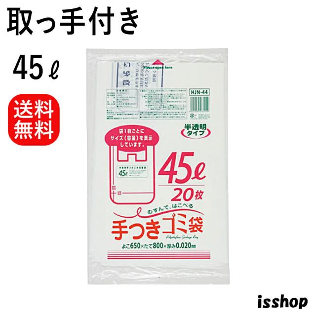 【レビュー特典あり】 送料無料 HJN44 ゴミ袋 45l 取っ手付き 手付き ポリ袋 HD+META 45リットル 白 半透明 0.020mm厚 650X800 20枚X30冊 600枚 x 2箱 1200枚 ごみ袋 45 ジャパックス アイエスショップ