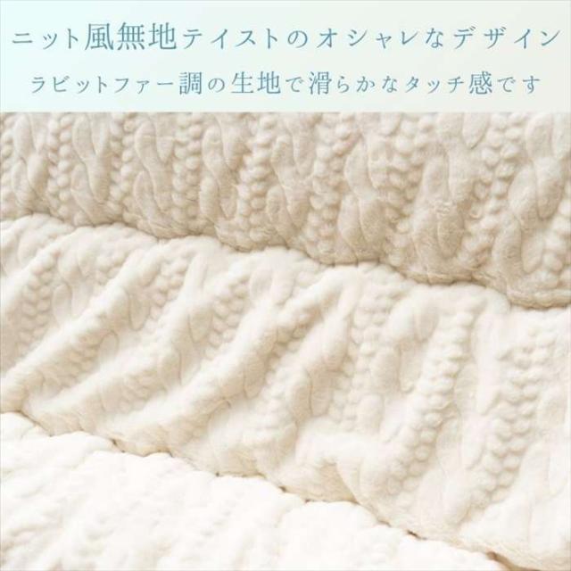 ニット風無地テイストのオシャレなデザイン。ラビットファー調の生地で滑らかなタッチ感です。日本製ボリュームこたつ布団(東レ・マッシュロン綿)仕様裏はフランネル素材で、暖かいです。