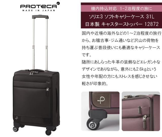 【機内持ち込み可能】【2-3泊対応】 エース プロテカ ACE PROTECA ソリエ3 キャリーケース 31L キャスターストッパー 静音 12872 日本製 ( ソフトキャリー ジッパーキャリー )