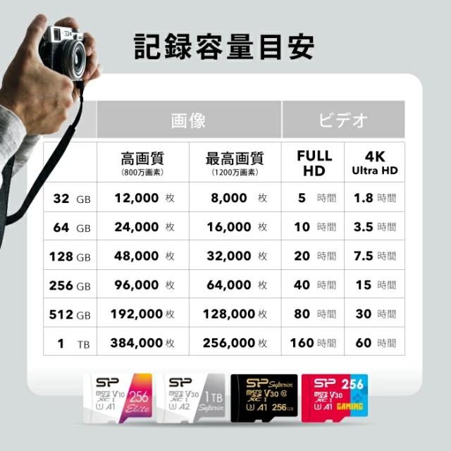 より高速で快適なアプリケーションパフォーマンスクラス2(A2)に適合。 著作権保護機能(CPRM)非対応 UHS-I U3 / ビデオスピードクラス30(V30)規格 / 4K UltraHD録画対応。 最大読込 100MB/s 書込 80MB/s。 防水、耐衝撃、耐低温/耐高温、耐X線。 Nintendo Switch 動作確認済。 | |