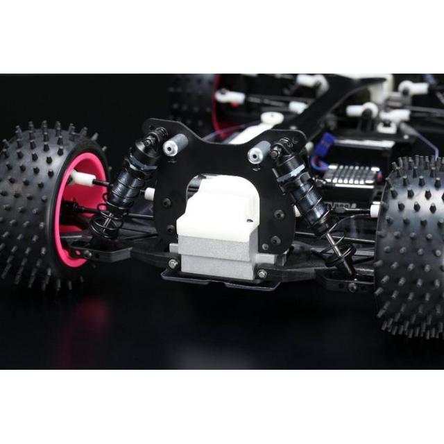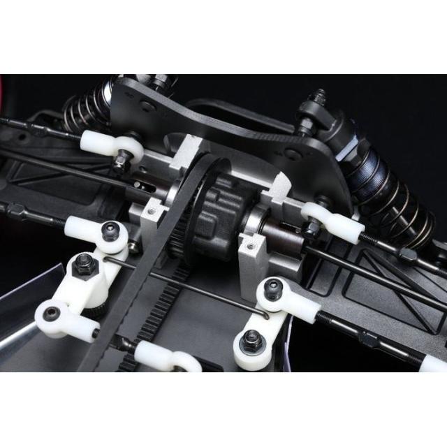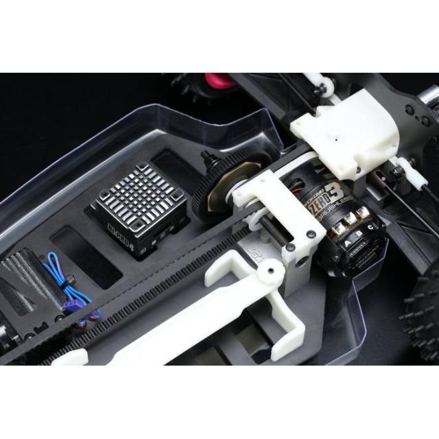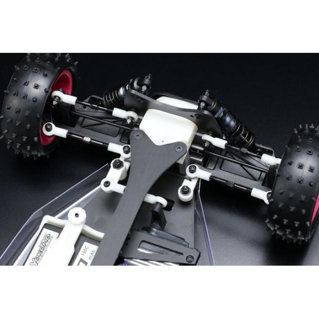 IFMAR世界選手権連覇を目標に、チームヨコモが威信をかけて仕上げたスーパードッグファイターのワークス仕様。熾烈な1991年のレースを制したマシンと同仕様の“スーパードッグファイターワークス‘91”が鮮烈に蘇ります!2ベルトドライブ4WD、4輪独立・ダブルウィッシュボーンサスの基本構造はドッグファイターから引き継いでいるものの、さらなる低重心化の促進やアッパーデッキの標準採用、サスペンションのロング化により、大幅なスタビリティの向上を果たしています。ダブルデッキのシャーシ構造にすることで飛躍的にピッチング剛性を高め、シャープなレスポンスと安定感を両立させた、本格競技用モデルの元祖と言えるマシンです。