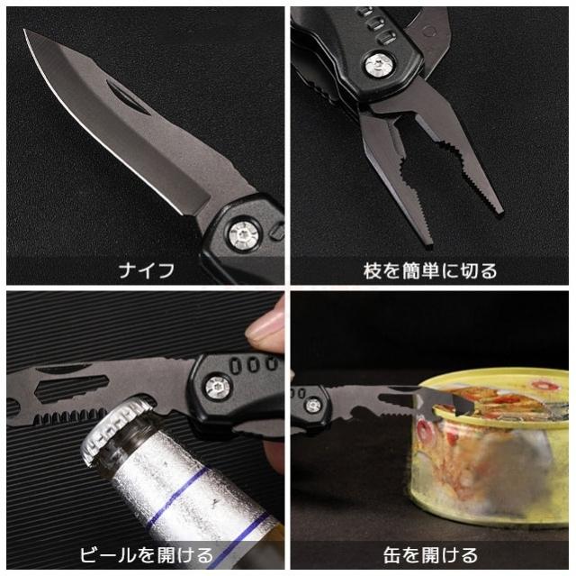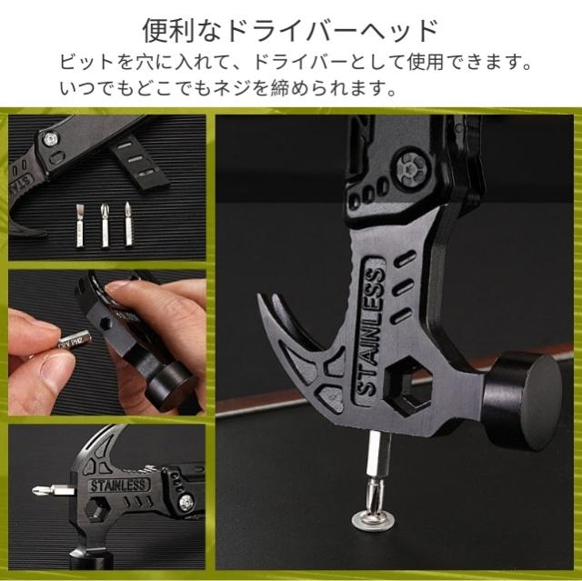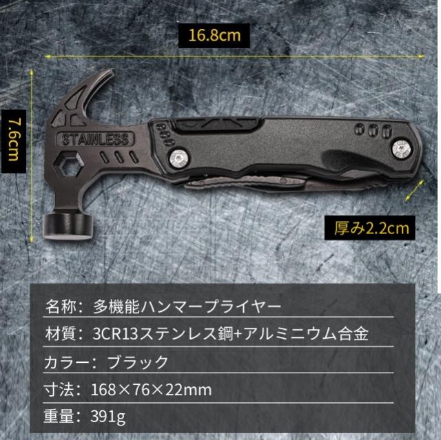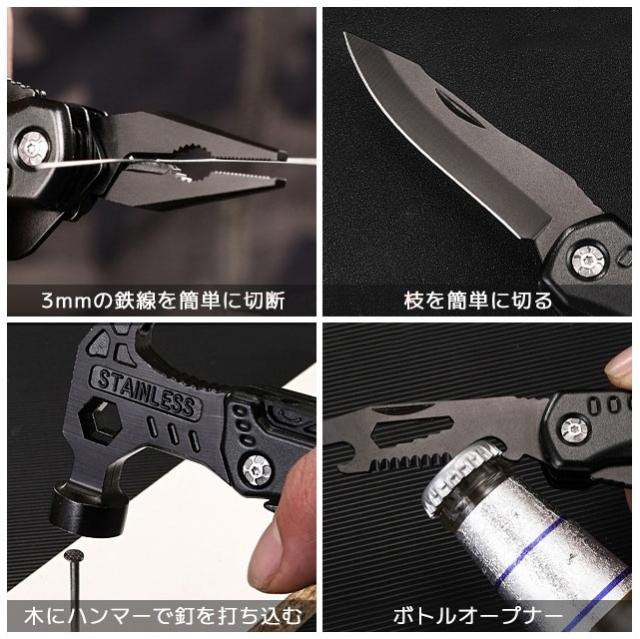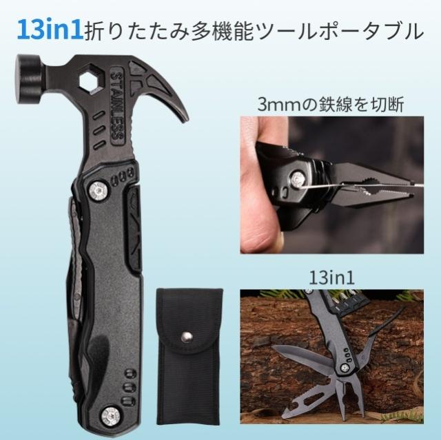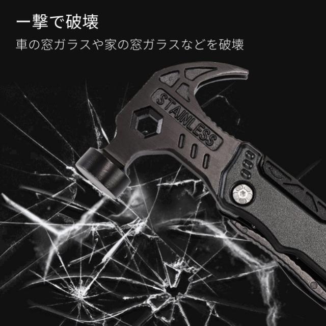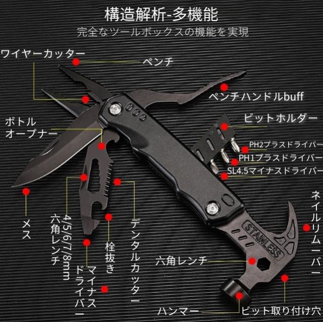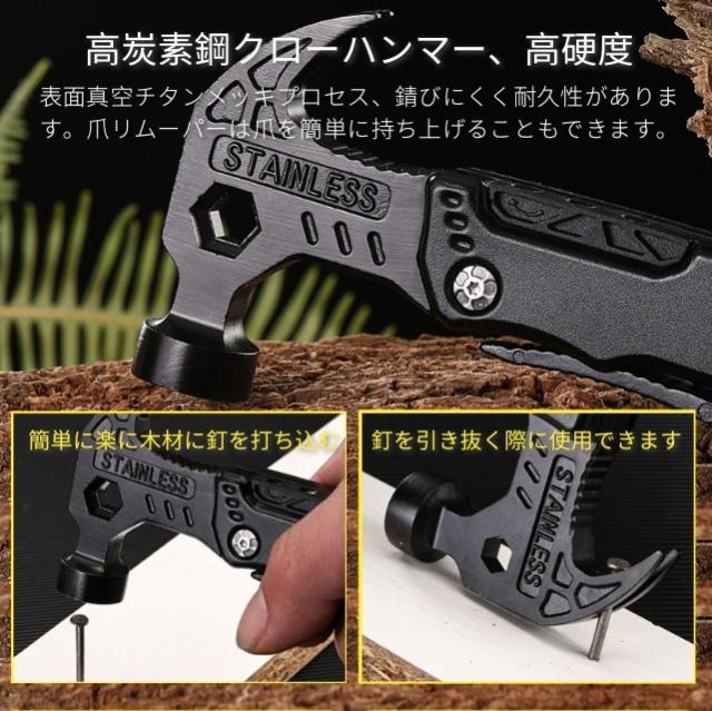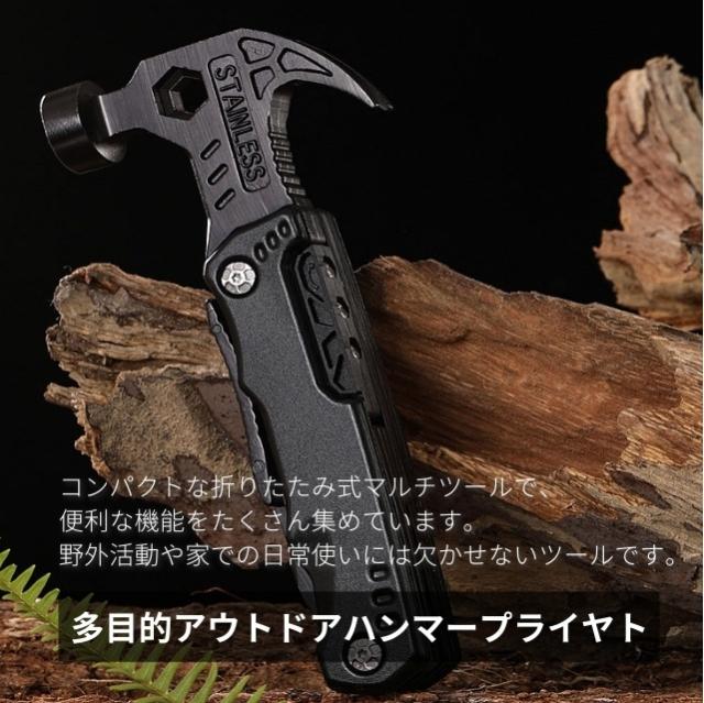 多機能マルチツール 折畳みペンチ キャンプハンマー サバイバルグッズ 防災グッズ 工具 アウトドア用 ナイフ ペンチ マルチレンチスチール ドライバー 鋸 栓抜き 釘打ち/抜く 設営 家庭DIY