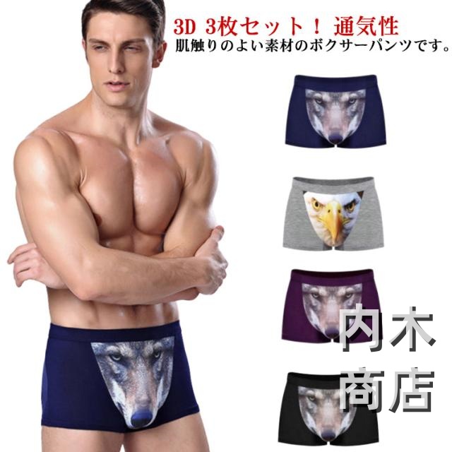 凸面デザイン メンズ 立体構造 通気性 ストレッチ アンダーウエア 薄手 インナー 涼しい 肌触り ボクサーパンツ 男性用 鷹 ギフト 個性的 狼 下着 前閉じ 彼氏 オオカミ 3 プレゼント パンツ ショーツ ボクサーブリーフ 3枚組 3枚セット