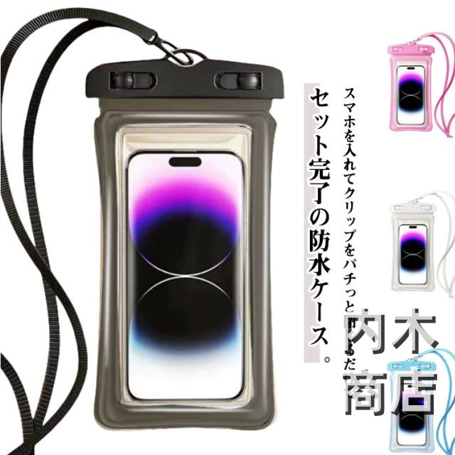 | 首にかけられるストラップ付き!水のトラブルからスマホを守る防水スマホポーチ。 防水規格の最高水準IPX8取得!大切なスマホを水濡れからガードしてくれるので、プールや海水浴などのレジャーシーンでも大活躍◎ 透明度の高いTPU素材を使用しているため、装着しても画面がきれいに見えます。 タッチパネルが操作できますのでスマホをそのまま使用できます。 ポーチに入れたままでも顔認証が使えるので、使いたいときにサッとスマートに使えます。 海・海水浴・プール・キャンプ・アウトドア・釣りなど…もちろんスノーボードやスキーなどの冬のレジャーにも◎ | |
