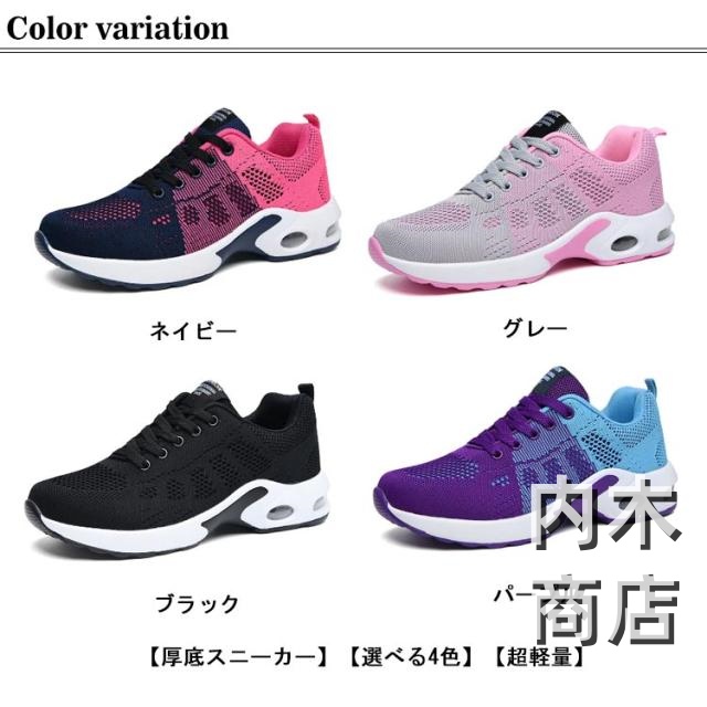 | 【厚底スニーカー】【選べる4色】【超軽量】 アッパーは通気性抜群のニットを採用して、通気性も改善させるので、熱がこもるのを防ぎ、さわやかな履き心地を提供してくれます。長い時間履いても快適! ソールは柔らかく、弾力もあり、多方向に曲がり足の動きをサポートしてくれ、歩きやすい!走りやすい!ヒールにはエアクッションも付き、反発性が高く、長時間歩いても疲れにくい! ソールが滑り止め機能を強化し、雨の日にも楽に運動できます。防滑や防震機能付きの優れたクッション性があり、耐磨耗性は抜群! インソールは柔軟性が高い材料を採用して、防震機能がアップし、蒸れが減らせて、良い通気性と抜群の衝撃吸収性を実現! シンプルなデザインで、さまざまなファッションに合わせやすい。普段履き、ウォーキング、ランニング、ジョギング、トレーニング、スポーツ・運動時、ジム、通学、散歩、アウトドア活動などいろいろな運動に適用します。 | |