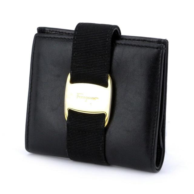 【20%OFFセール中】サルヴァトーレフェラガモ Salvatore Ferragamo 二つ折り財布ヴァラ ブラック ゴールド レディース 中古