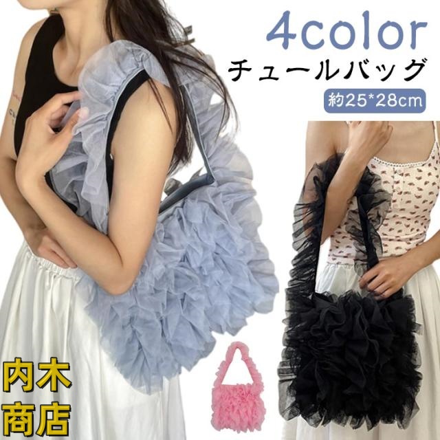 売上急増中 ブラック ショルダーバッグ ハンドバッグ バッグ トートバッグ レディース 軽量仕様 在庫限りの大特価 品質安心 チュール ホワイト お出かけ かわいい カジュアル オールシーズン グレー シアー フリル ふわふわ デイリー 肩掛け 送料無料