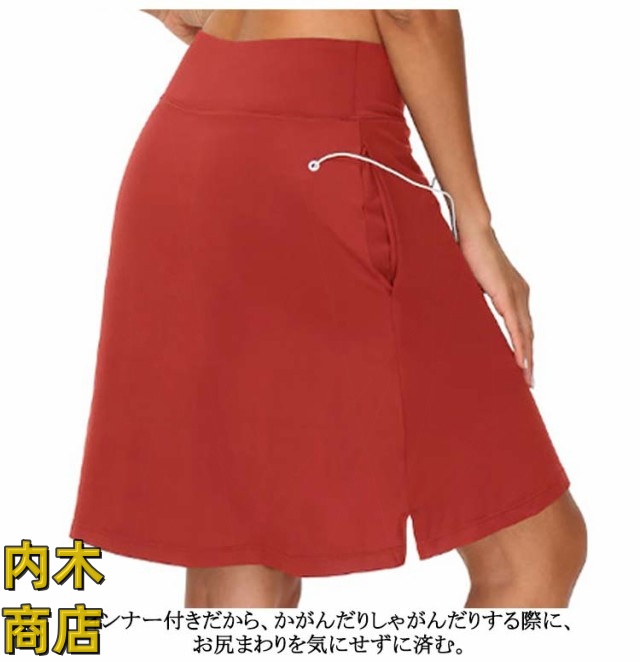 軽量 フィットネス ランニング 夏 膝丈 膝 ストレッチ テニス ヨガウェア インナー付き レディース ゴルフウェア 丈長め トレーニング ゴルフスカート テニススカート 吸汗 女性 大きいサイズ 丈 テニスウェア スカート インナー 速乾 ゴルフスカート