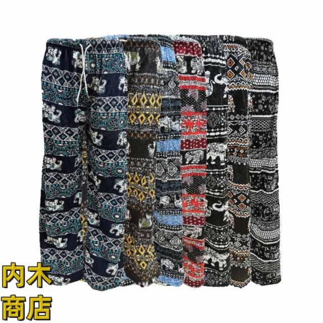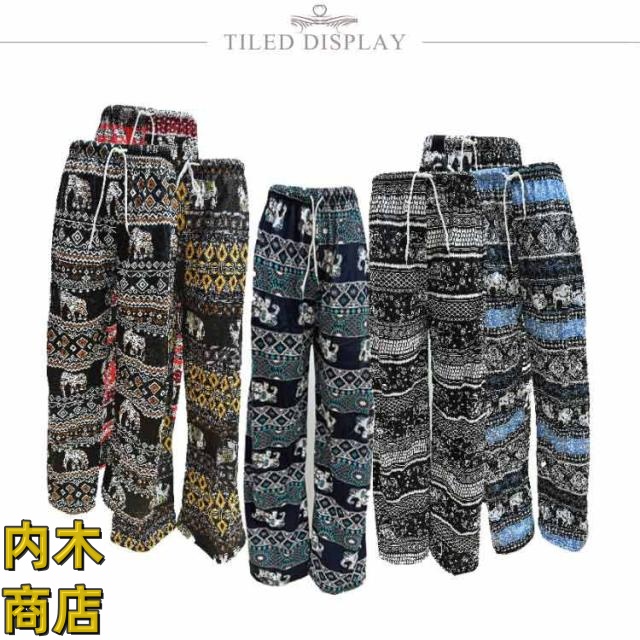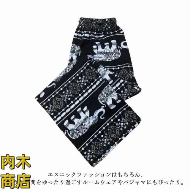 ぞう タイパンツ ワイドパンツ レディース ストレート アジアン かわいい ヨガやダンスにも エスニック ヴィンテージ 軽い ルームウェア 象 体型カバー イージーパンツ 夏 カジュアル 薄手 ロングパンツ タイパンツ 春 パンツ ゾウ柄