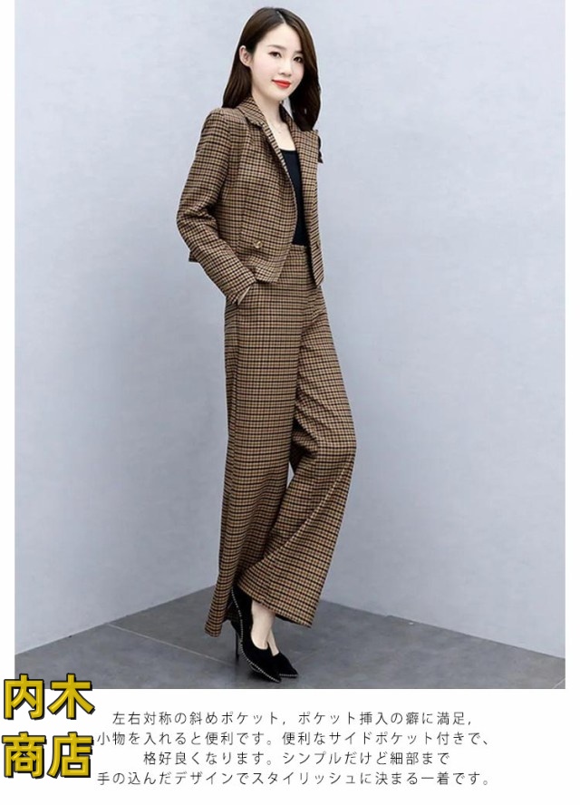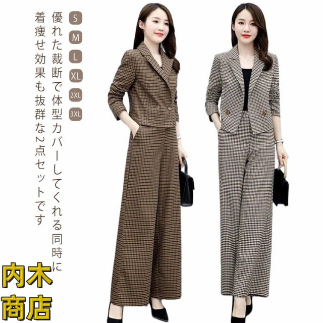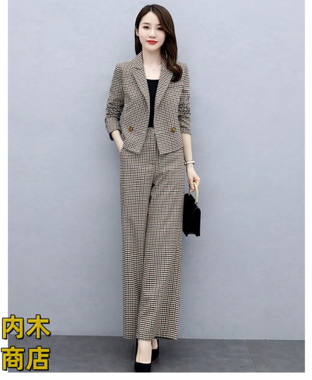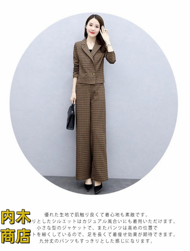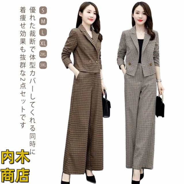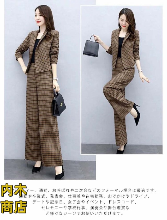 入学式 セレモニー 卒園式 スーツ 秋 ママ オフィス パンツドレス 春 セットアップ ビジネス コーデ ゆったり 大人 卒業式 入園式 チェック セットアップ きれいめ 2点セット パンツスーツ レディース パンツスーツ