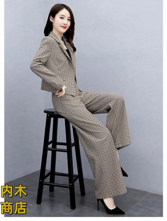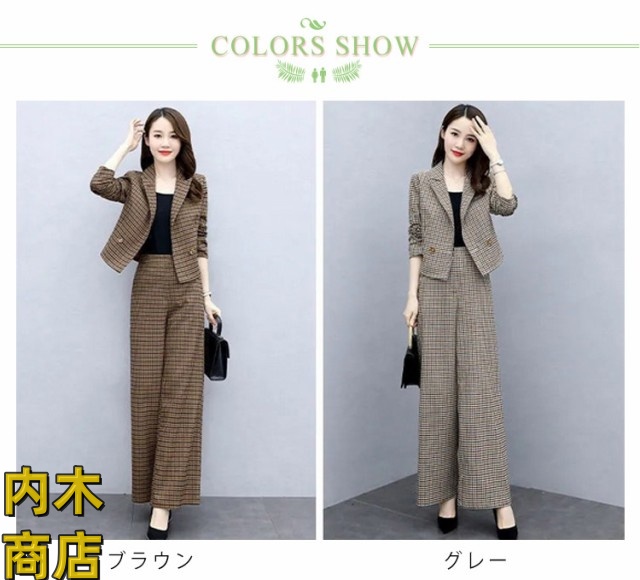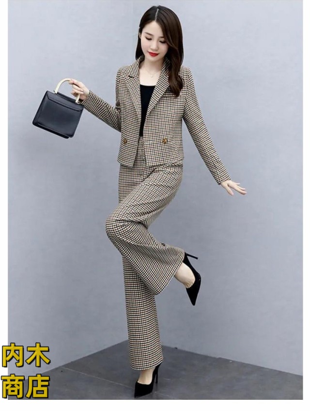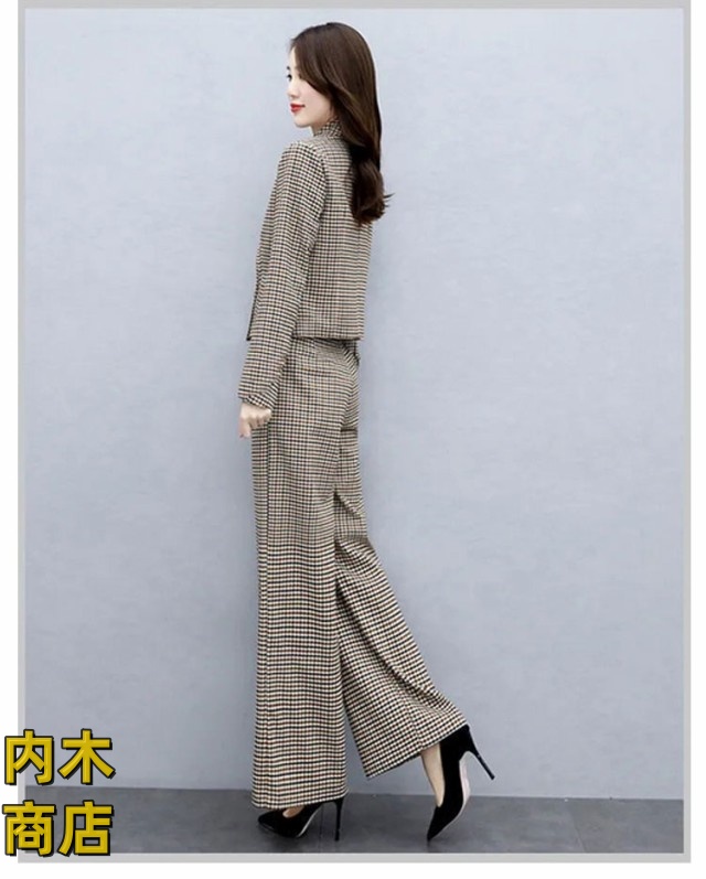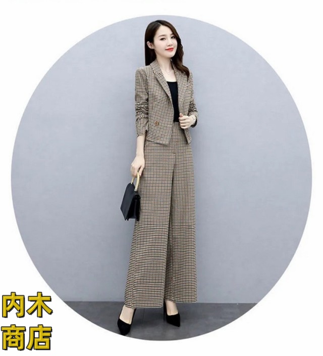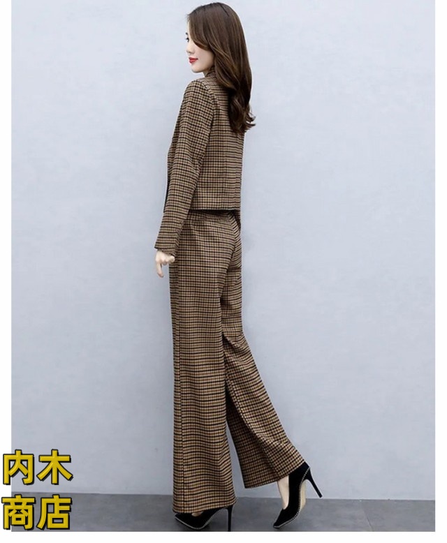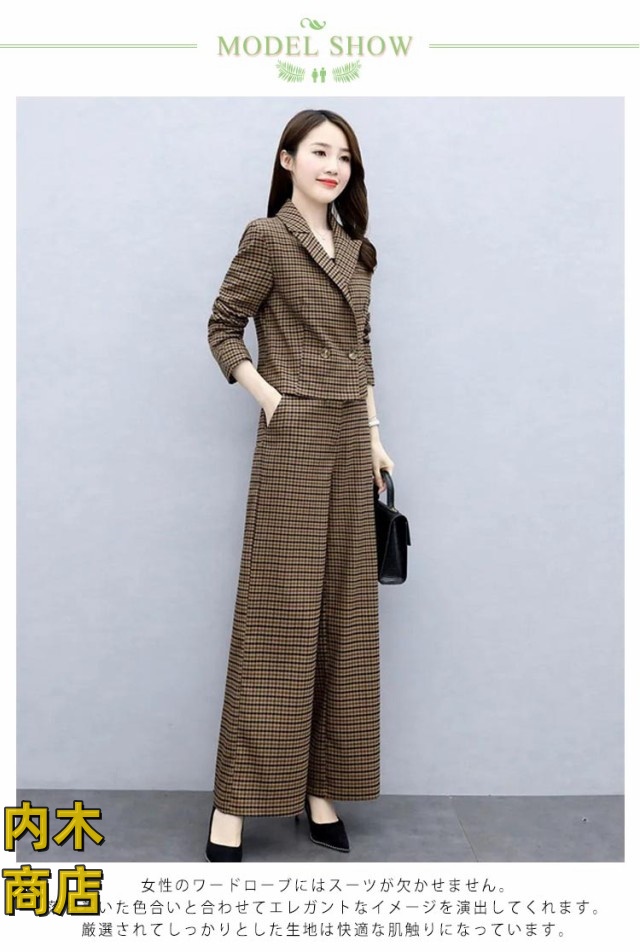 入学式 セレモニー 卒園式 スーツ 秋 ママ オフィス パンツドレス 春 セットアップ ビジネス コーデ ゆったり 大人 卒業式 入園式 チェック セットアップ きれいめ 2点セット パンツスーツ レディース パンツスーツ