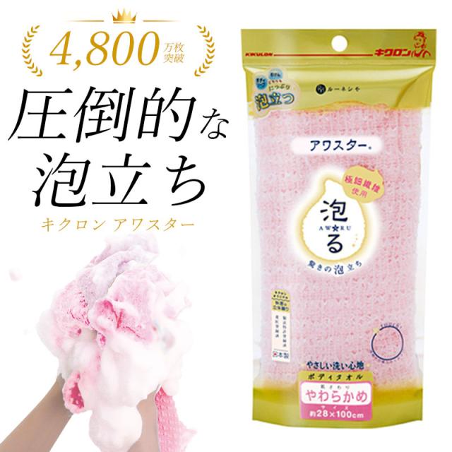 アワスター ボディタオル やわらかめ ピンク 1枚入