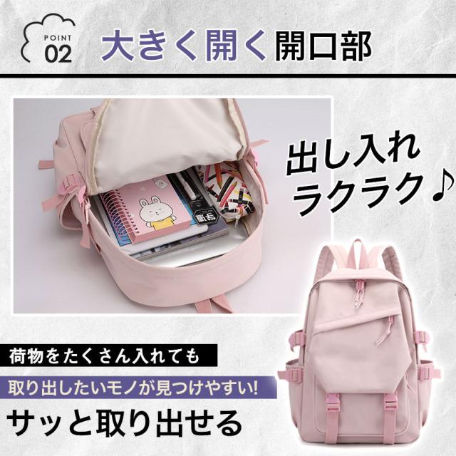 30Lクラスの収納力で、教科書・PC・お弁当・水筒まで全部お任せ。学生さんにも社会人にも◎