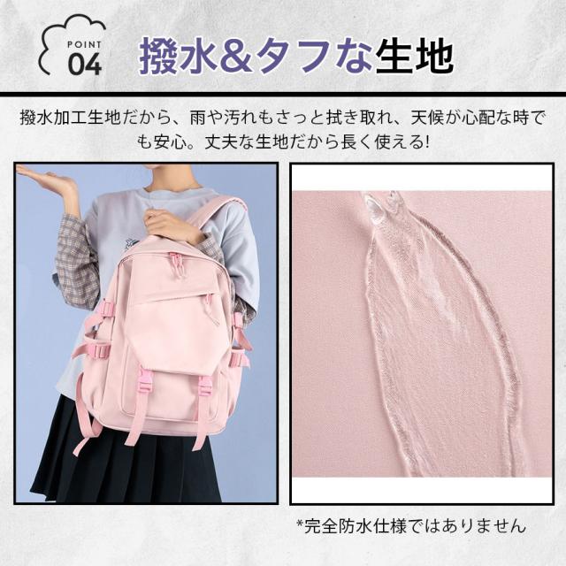 表面はしっかり撥水加工。毎日の使用にも耐える丈夫な生地で、通学や旅行にもぴったり。