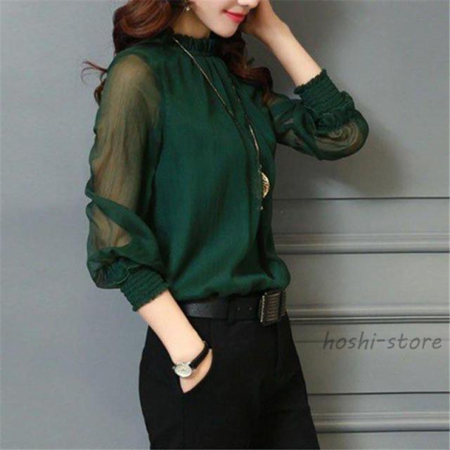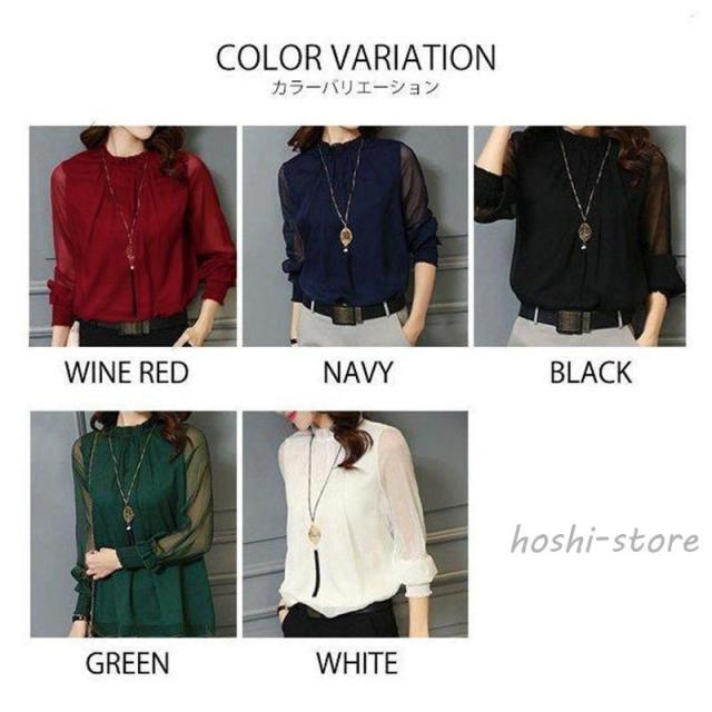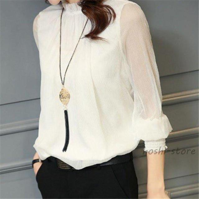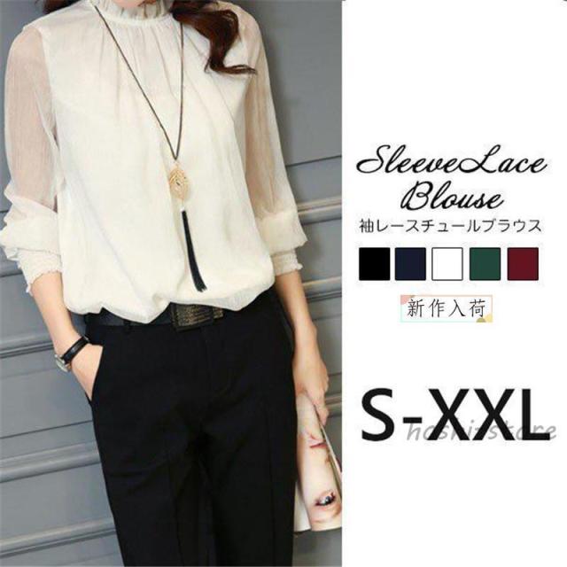 ブラウス レディース 長袖 シャツ レース チュールブラウス 立ち襟 袖レース シースルー ルーズ ゆったり 透け感 カジュアル 春 夏 おしゃれ