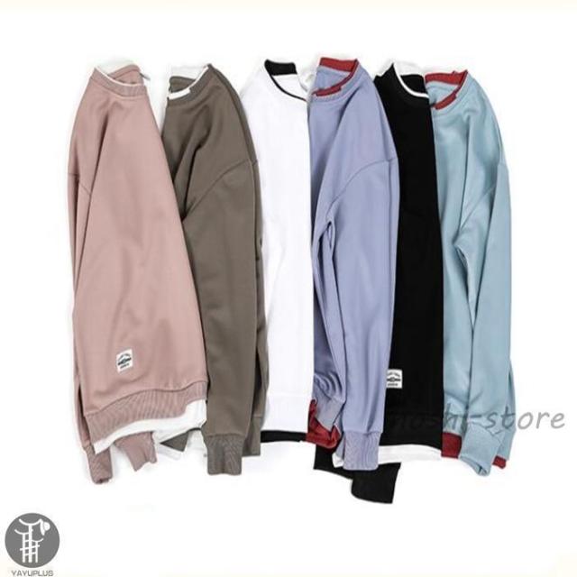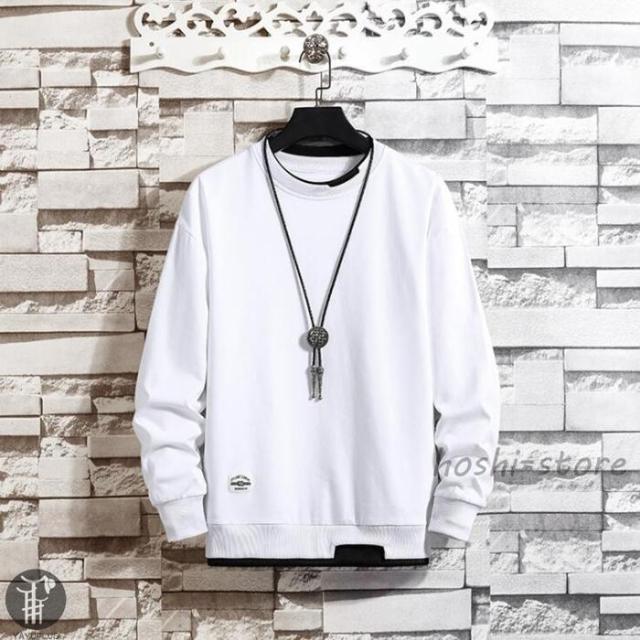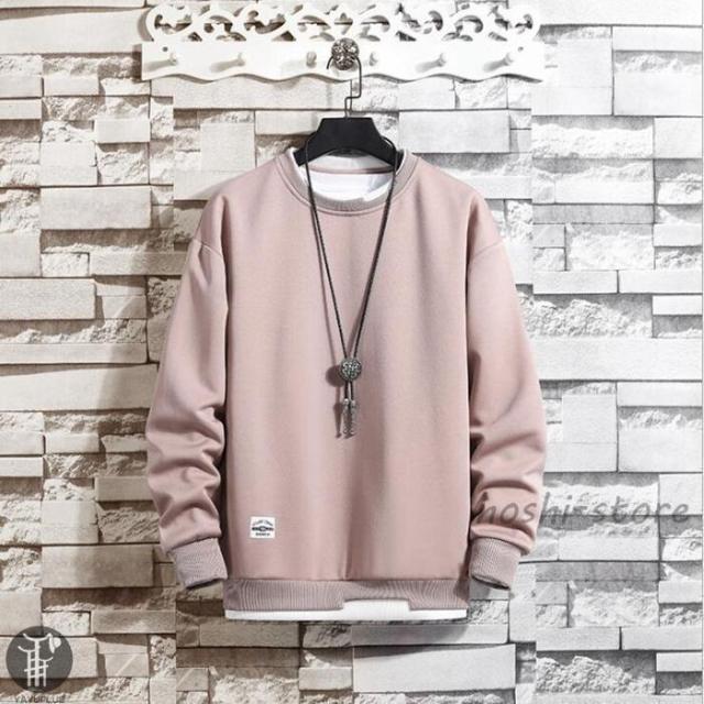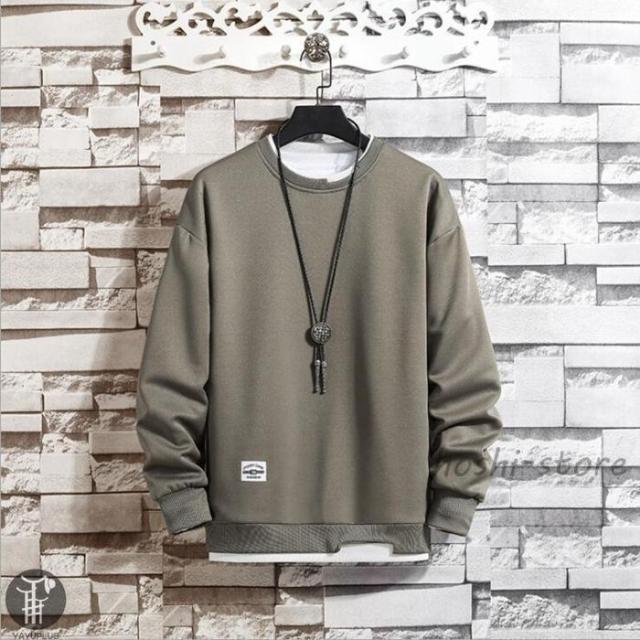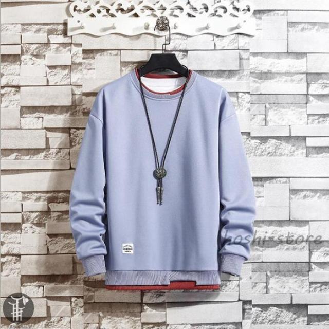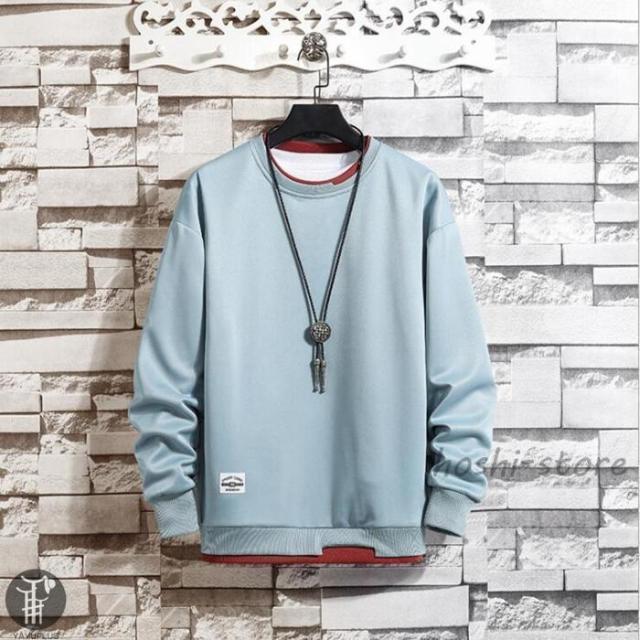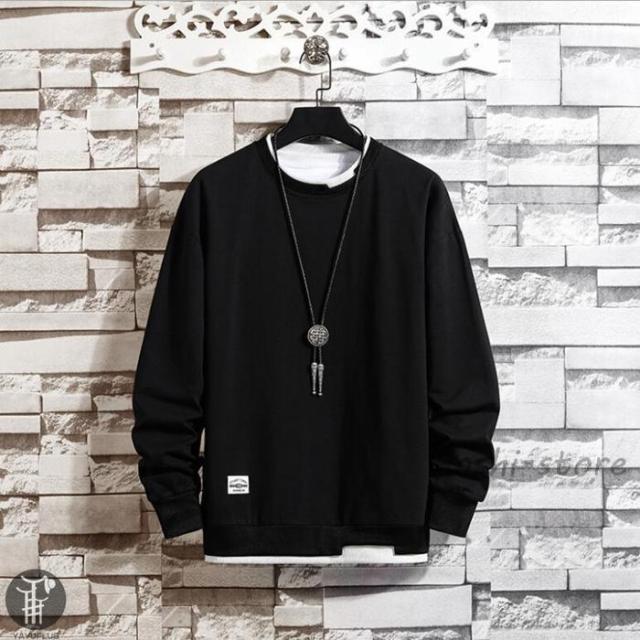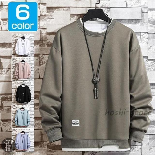 春 トレーナー レイヤードTシャツ 重ね着 メンズ トップス 切り替え スウェット オシャレ プルオーバー 長袖 クルーネック 春服 秋服 新作