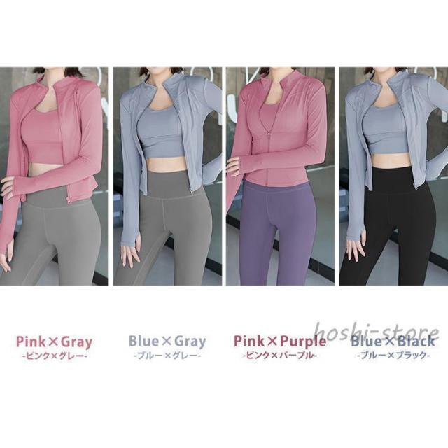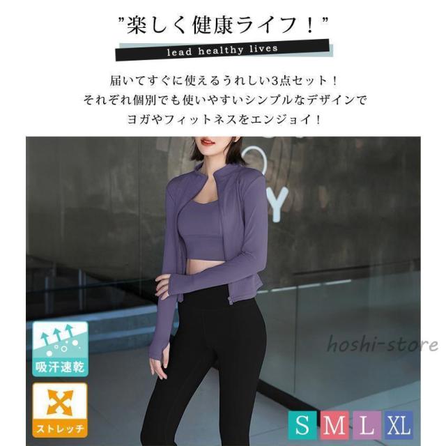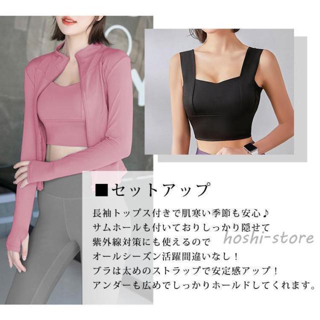 春 夏 ヨガウェア トップス パンツ 上下 3点 セット 長袖 レディース 体型カバー セットアップ レギンス カップ付きブラトップ 秋 冬 黒