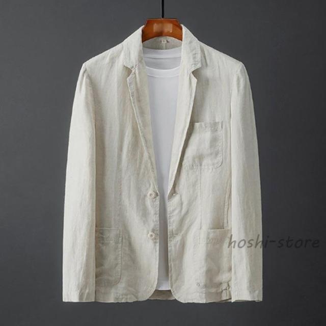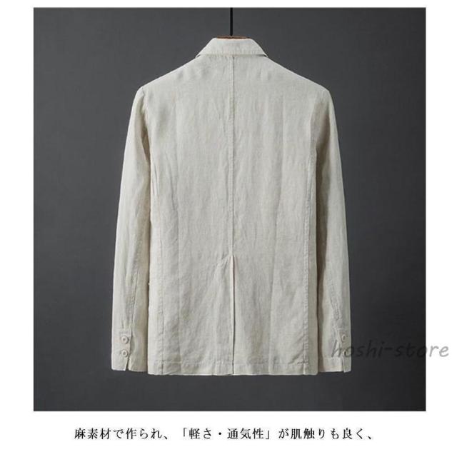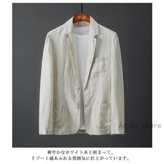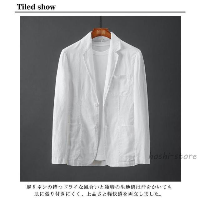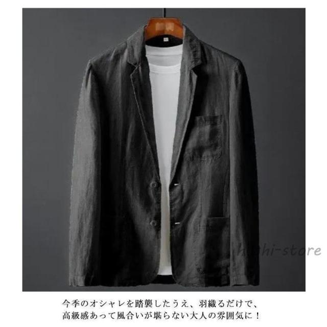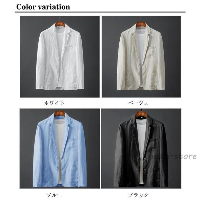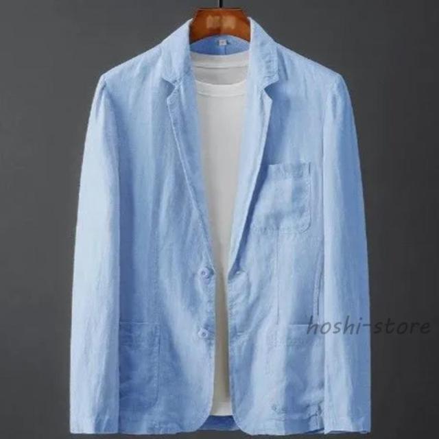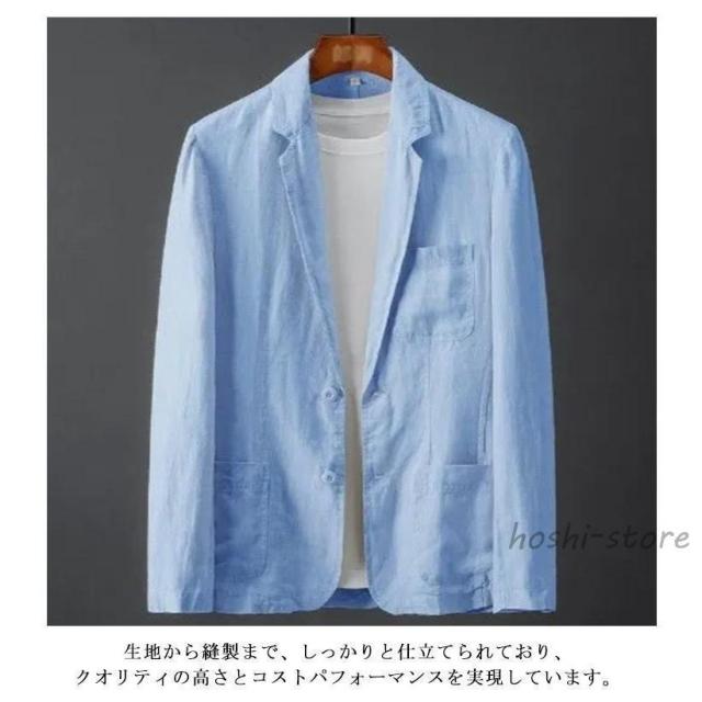 麻ジャケット メンズ 春夏 薄手 サマージャケット ひんやり 涼感 ビジネス テーラード ジャケット ブルー 麻 リネン 夏 長袖 ブレザー リネンジ