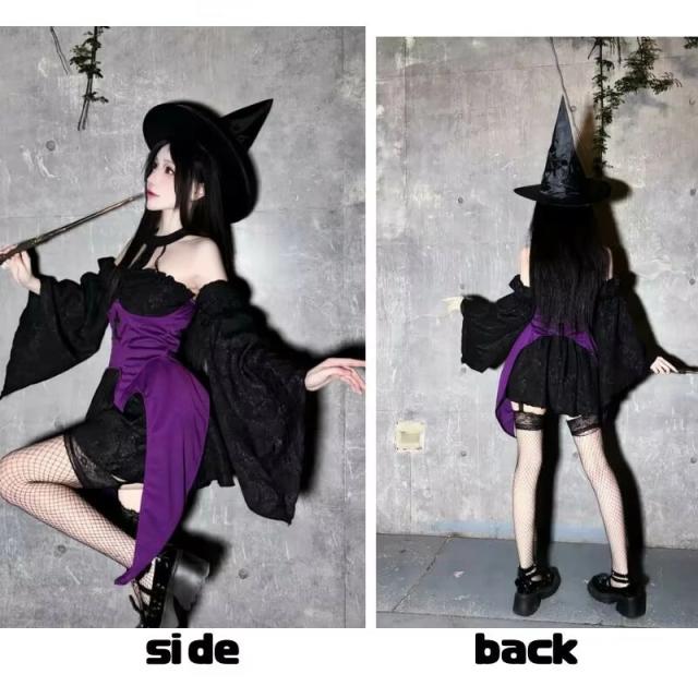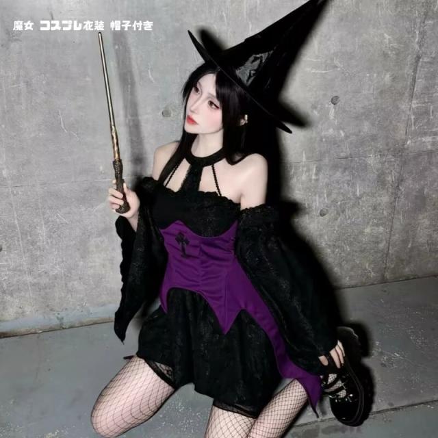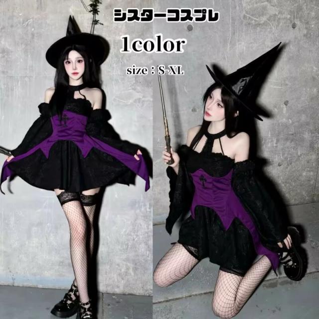 魔女 コスプレ セクシー パープル 衣装風ハロウィン 可愛い ハロウィン衣装 女性 女王様 黒猫 かわいい 長袖 大人用 文化祭 吸血鬼 仮装 魔法使い ロング 小悪魔 デビル ゴシック風 暗黒系 ハロウイン ハロウィンコスチュームコスプレ