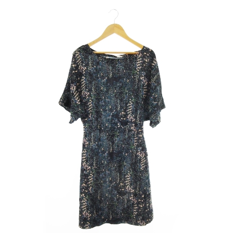 【中古】未使用品 シーバイクロエ SEE BY CHLOE シルクワンピース ミニ 半袖 絹 プリント 総柄 モザイク USA2 XS 緑