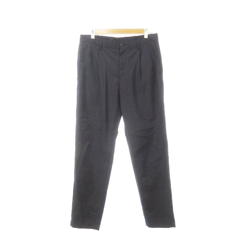 【中古】グリーンレーベルリラクシング パンツ スラックス テーパード ウール混 2タック バックゴム チェック L 紺