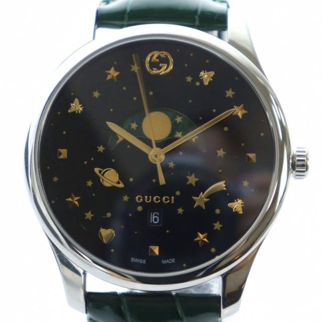 【中古】グッチ GUCCI Gタイムレス 腕時計 ウォッチ クォーツ ムーンフェイズ レザーベルト デイト カレンダー付き