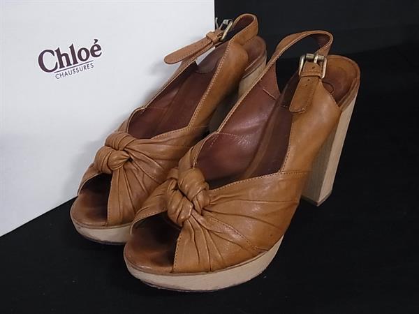 Chloe クロエ レザー ハイヒール サンダル 表記サイズ 35 (約22.0cm) 靴 シューズ レディース ブラウン系 DK0343