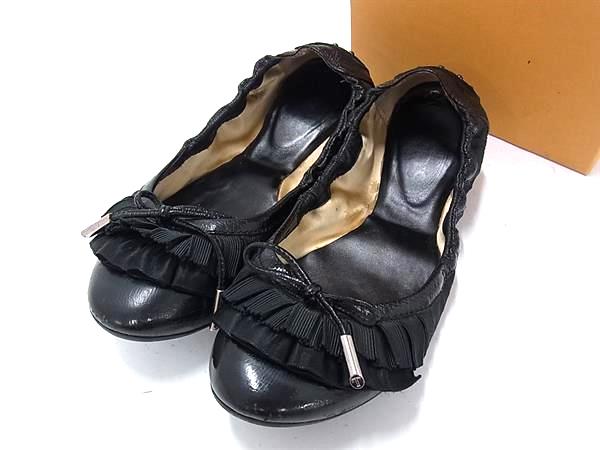TODS トッズ パテントレザー×キャンバス フリル パンプス サイズ35 1/2(約22.5cm) シューズ 靴 レディース ブラック系 DK0458