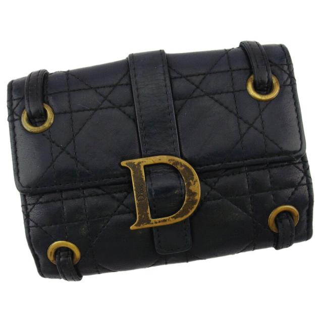 【新春セール★30%OFF】ディオール Dior 二つ折り財布レディディオール カナージュステッチ ブラック ゴールド レディース 中古