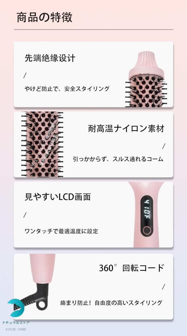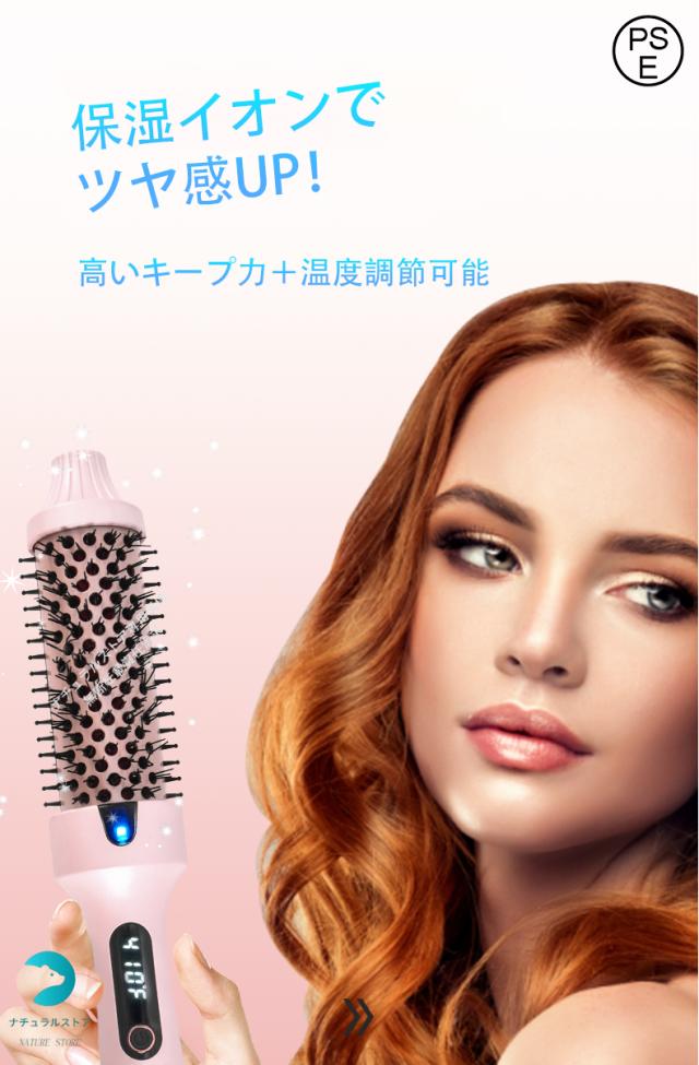 ヘアアイロン ヒートブラシ カールアイロン 2way マイナスイオン 40mm すとれーと 速熱 ツヤ感アップ 巻き髪 傷まない スタイリング自由 美髪ケア 使いやすい 朝3分とかすだけで! 女性 男性 かわいい おしゃれ