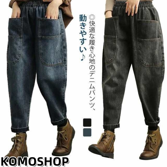 大きいサイズ サルエルパンツ レディース ジーンズ デニム ウエストゴム デニムパンツ ワイドパンツ サルエル 森ガール チノパン ゆるっと可愛い 動
