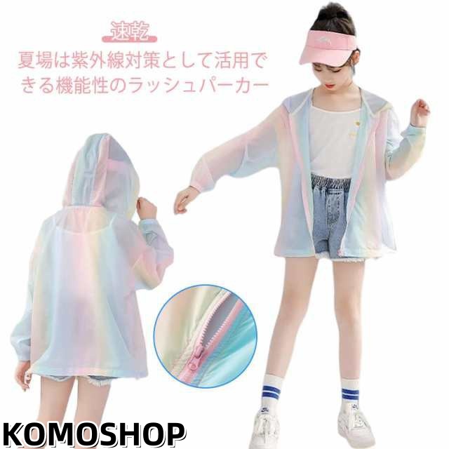 | 夏場は紫外線対策として活用できる機能性のラッシュパーカー。 通気性・吸汗性・速乾性に優れた素材を使用し、ひんやりした着心地。 前面ジップアップなので着替えも楽々◎便利なフード付きます。 強い日差しから紫外線を効果的にカットし、お肌を守れるのに優れている。 折り畳んでバッグに入れるタイプなので、収納は便利で持ち運び易いです。 お出かけ、通園、通学、海、海水浴、夏祭り、登山、遊園、ピクニックにするのも重宝します。 | |