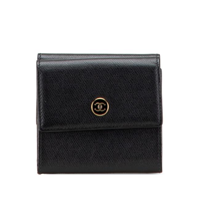 シャネル ココボタン 三つ折り財布 ブラック レザー レディース CHANEL 【中古】