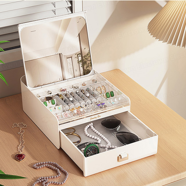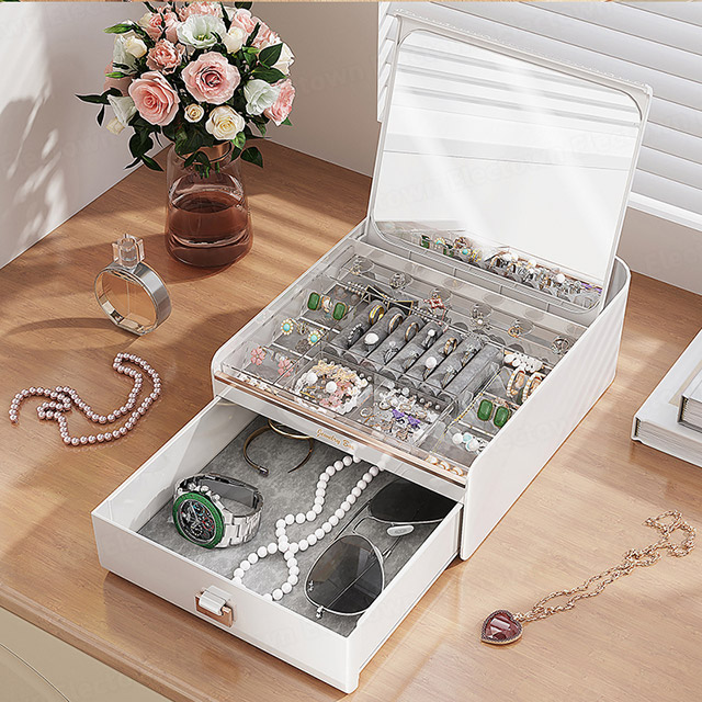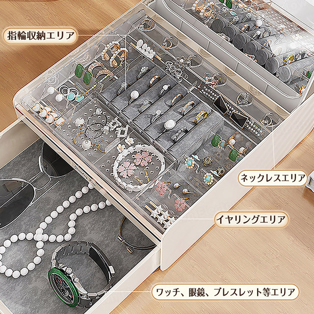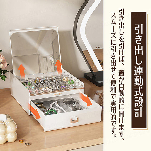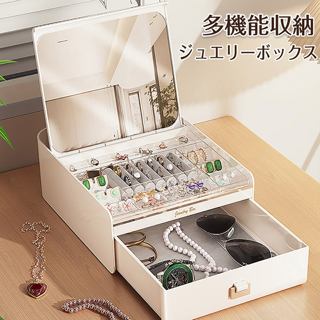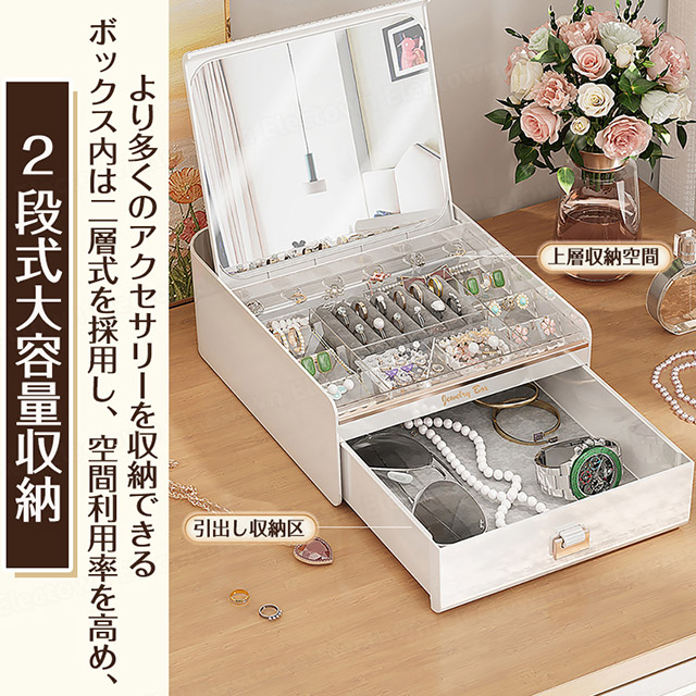 2段式 ジュエリーボックス ジュエリーケース 化粧鏡 アクセサリーボックス アクセサリーケース 大きミラー付き 宝石箱 ネックレス 収納ボックス 小物入れ 大容量収納 母の日 敬老の日 ギフト