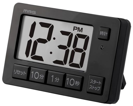 MAG(マグ) タイマー キッチン 勉強 学習 会議 音量切り替え 消音 無音 ライト デジタル 時計表示 置き掛け兼用 マグネット 磁石 ブラック ヒカルン TM-608A BK-Z ノア精密