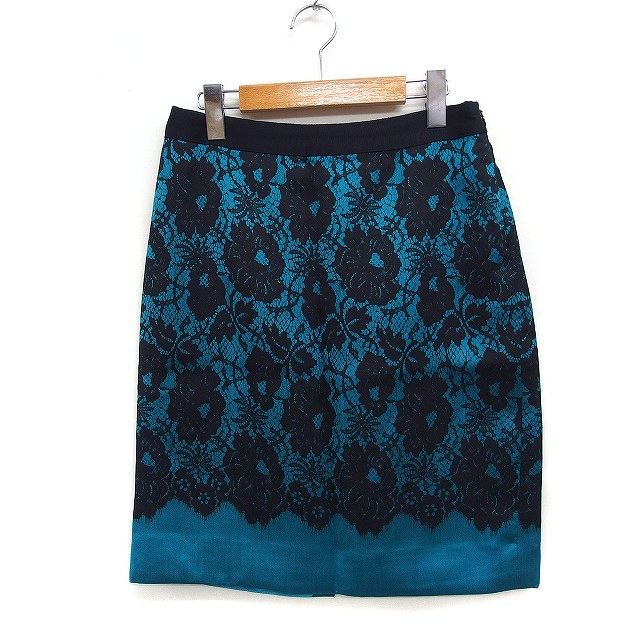 【中古】ミリー milly レースプリント タイトスカート ミニ スリット シルク混 ウール 0 ブルー系 /FT42 レディース