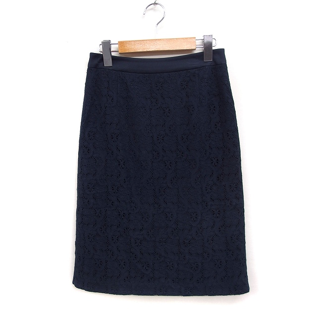 【中古】ポールスチュアート PAUL STUART レース タイトスカート ひざ丈 スリット コットン 綿 4 ネイビー 紺 /FT45