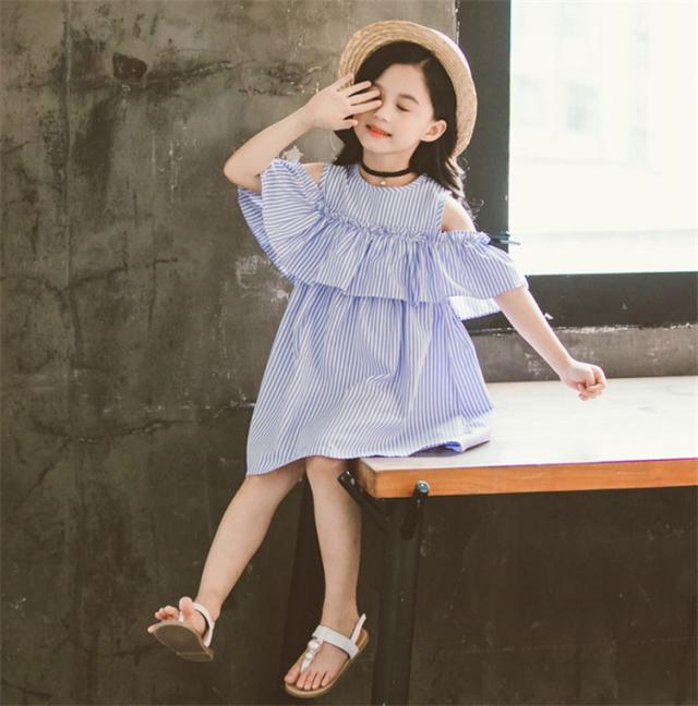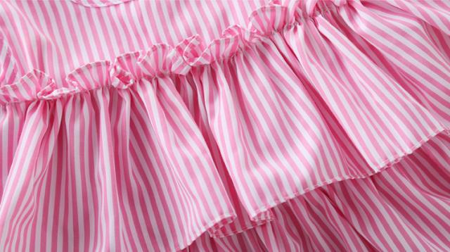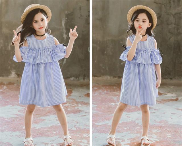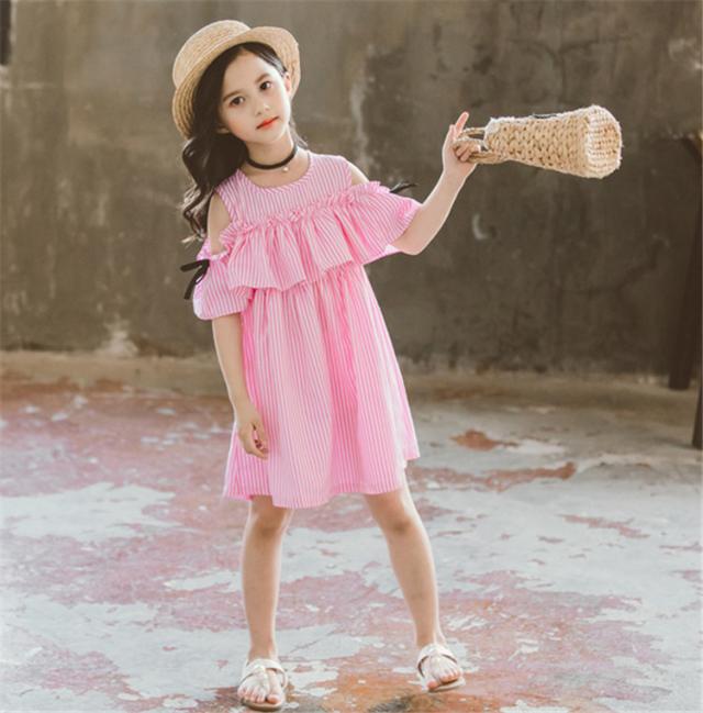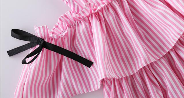 子供服 ワンピース ピンク 160 韓国子ども服 キッズ 女の子 夏服 ストライプ 肩出し 子供ドレス 結婚式 誕生日 ベビー服 ジュニア お姫様 おしゃれ 可愛い 新品