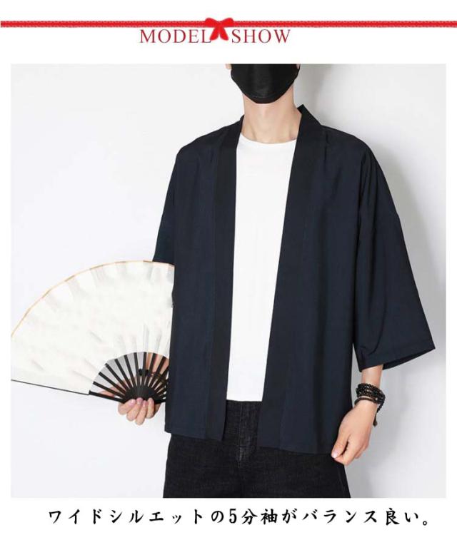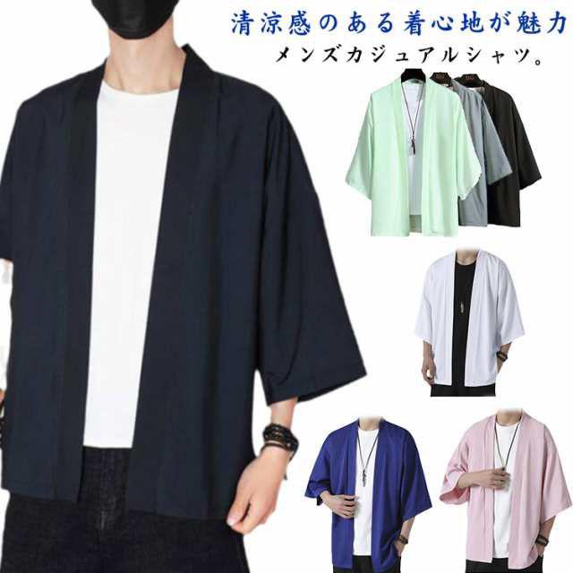 五分袖シャツ 接触冷感 開襟シャツ トップス メンズ 羽織 アウター アイスシルク カジュアルシャツ 半袖 5分袖 サマーカーディガン 和服 無地 大きサイズ ゆったり 夏服 涼しい 父の日 ギフト M?5XL