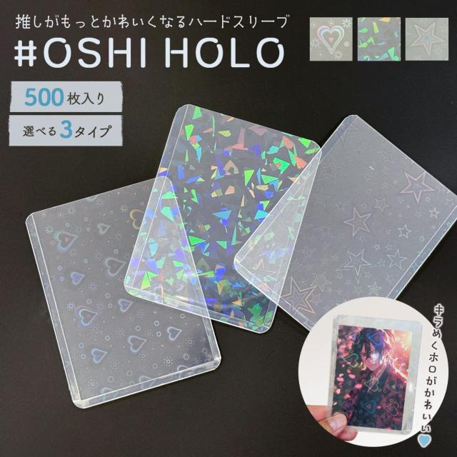 大切なトレカやフォトカードをしっかり保護できるホロデザインの硬質ハードスリーブです。人気のハート、スター、クリスタルの3タイプから選べ、推しのグッズをより可愛く素敵に演出します!