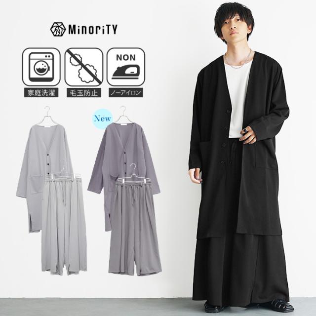 新作 セットアップ メンズ 秋 長袖 春 カーディガン メンズ ロングカーディガン メンズ ワイドパンツ メンズ バギーパンツ ビッグシルエット カーディガン オーバーサイズ モード系 ブラック 黒 グレー 韓国 ファッション メンズファッション 秋服 minority マイノリティ