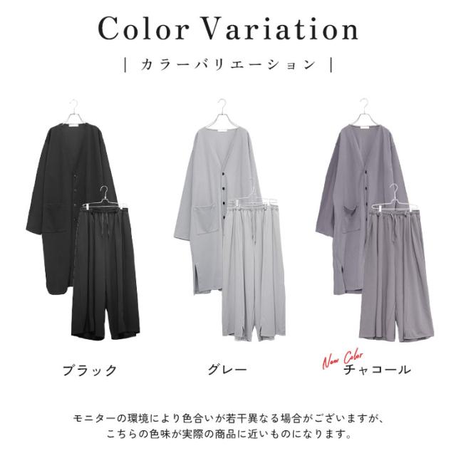 【梨地ドレープロングカーディガンセットアップ】\新色「チャコール」が登場/