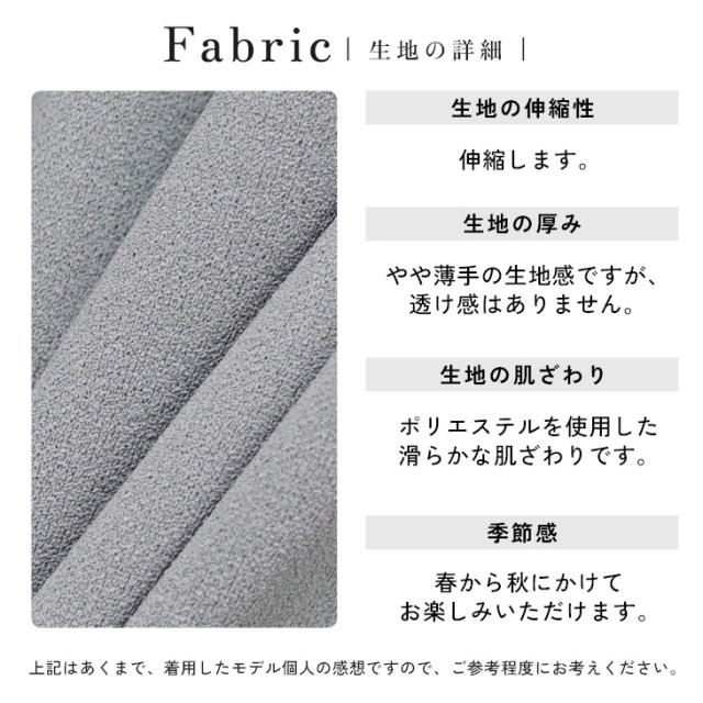 軽やかでドライな肌ざわりが特徴の梨地素材を使用。洗濯機で洗えて毛玉ができにくく、アイロン不要のシワになりにくさも兼ね備えており、ご家庭でも手軽にお手入れが可能です。扱いやすさに優れたアイテムです。