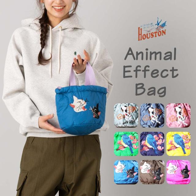 ヒューストン HOUSTON 2wayアニマル刺繍エフェクトバッグ メンズ レディース ユニセックス 手提げ袋 ショルダーバッグ カジュアル バッグ 刺繍 猫 ネコ 鳥 巾着 動物 古着 レトロ スカジャン ヴィンテージ ビンテージ 6005W 6006W 6007W